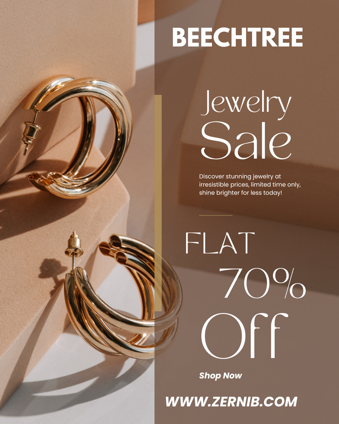 Stylish branded jewelry on flat 70% off at Zernib. Premium earrings, necklaces, and fashion accessories displayed elegantly for a luxury shopping experience. Perfect for women who love trendy, high-quality jewelry at discounted prices. Shop bestselling brand jewelry with huge savings only at Zernib.