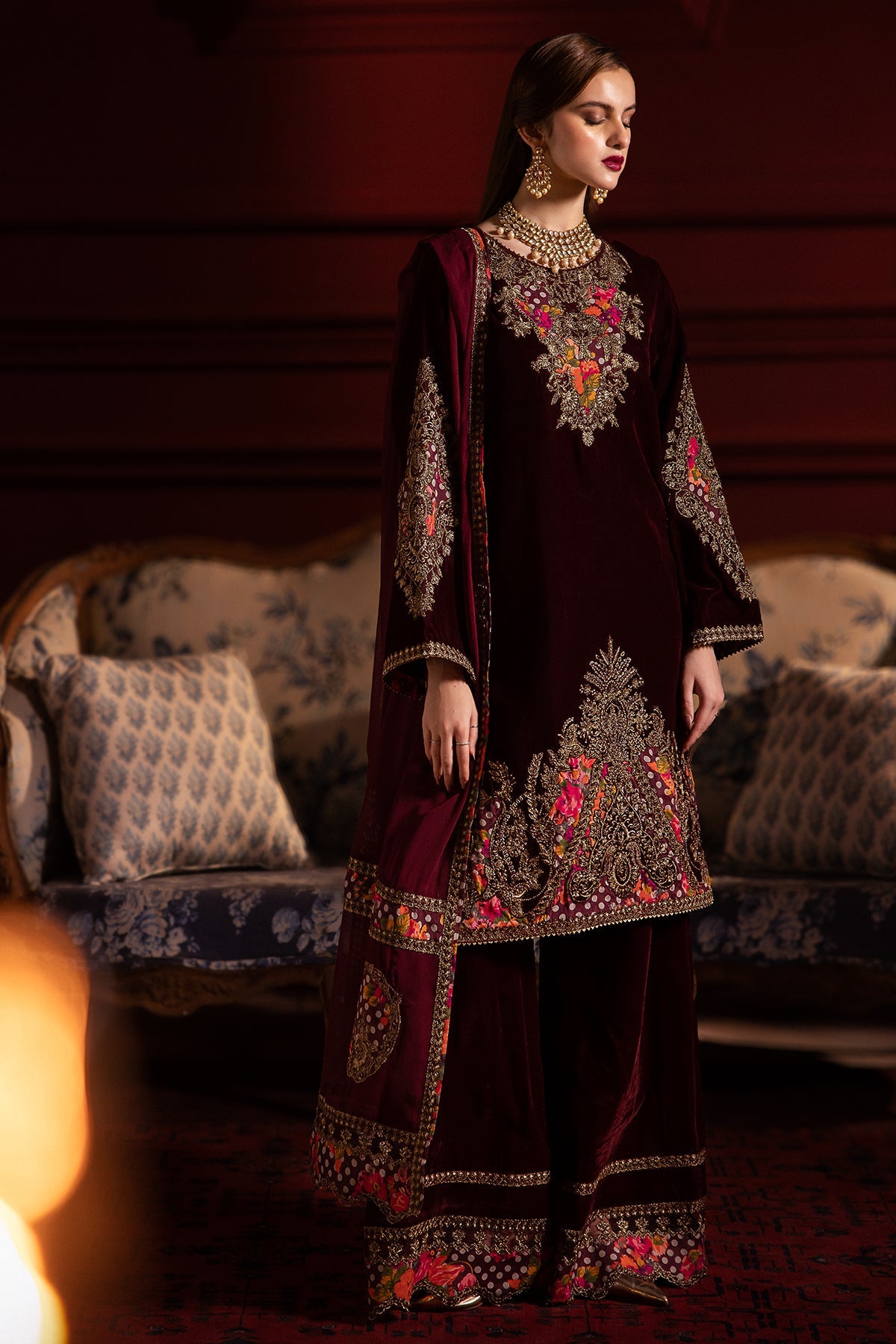 Embroidery Dyed Velvet Front 1.25 Mtr