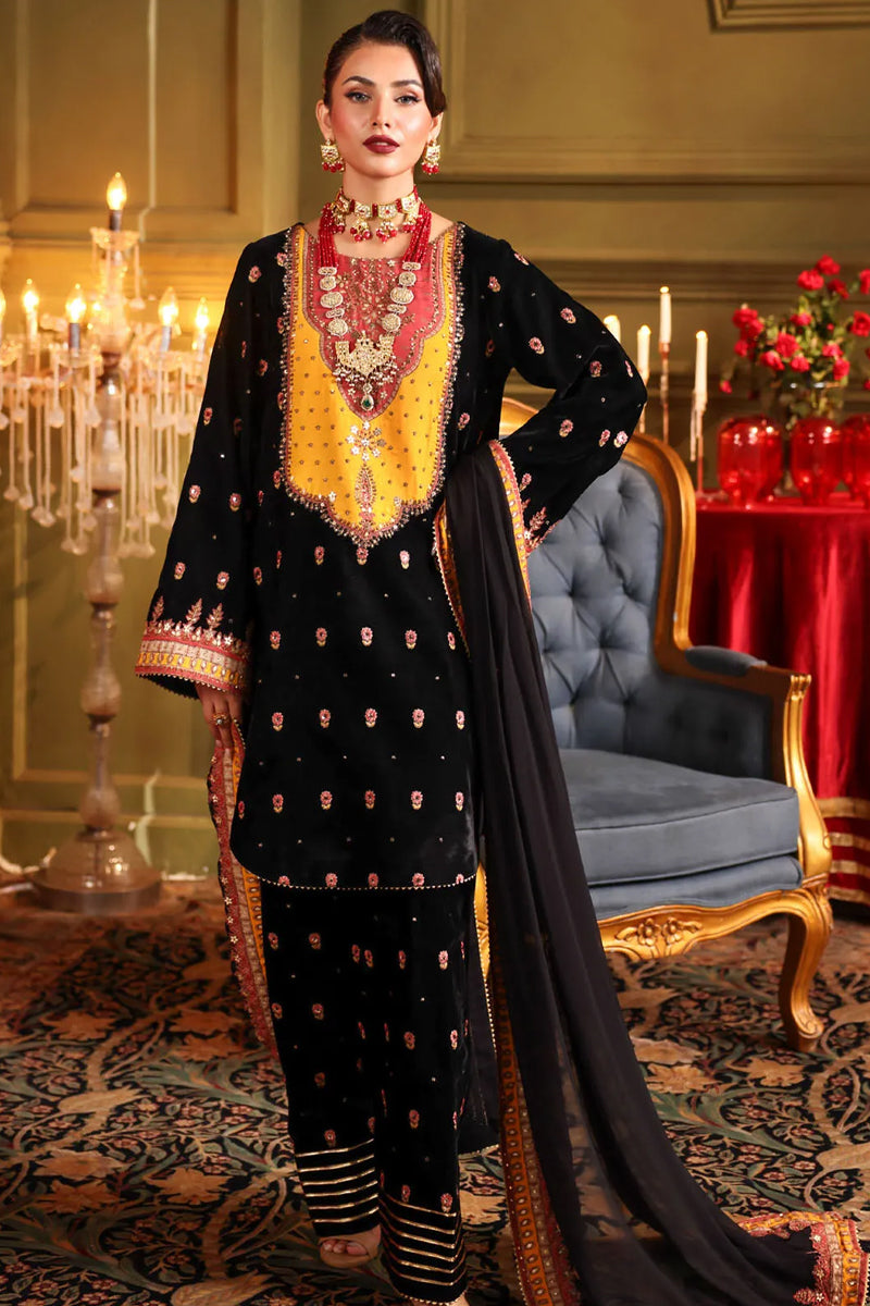 Embroidered Dyed Velvet Front & Sleeves 2 Meter Printed Neck With Handwork 1 Pcs Dyed Velvet Back...