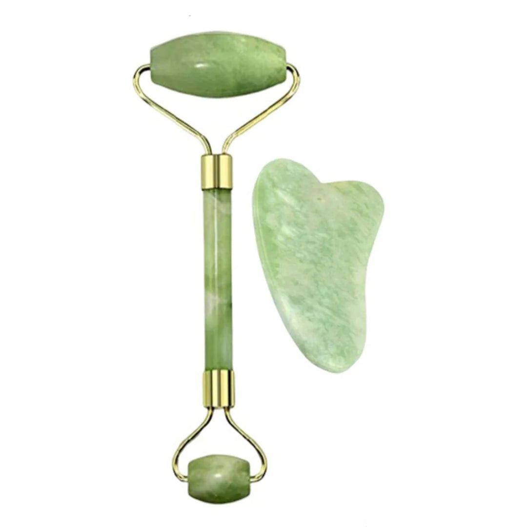 ring skin stimulation and relaxation to your beauty routine with the JADE ROLLER & GUASHA STONE. This customizable set features a jade roller and gua sha stone for ultimate facial massage. Promote circulation and relaxation for firmer, more toned skin with regular use.
