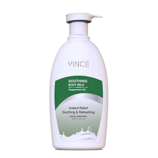 Experience the calming power of Vince Soothing Body Milk, enriched with natural peppermint oil to deeply moisturize and soothe irritated skin. This gentle body milk provides relief from dryness, redness, and itchiness, helping to restore your skin’s youthful, flawless appearance. Its non-greasy formula delivers lasting hydration while calming sunburn and enhancing skin vitality for a refreshed and comfortable feel.